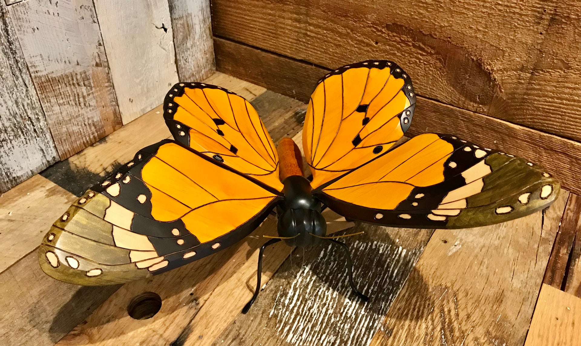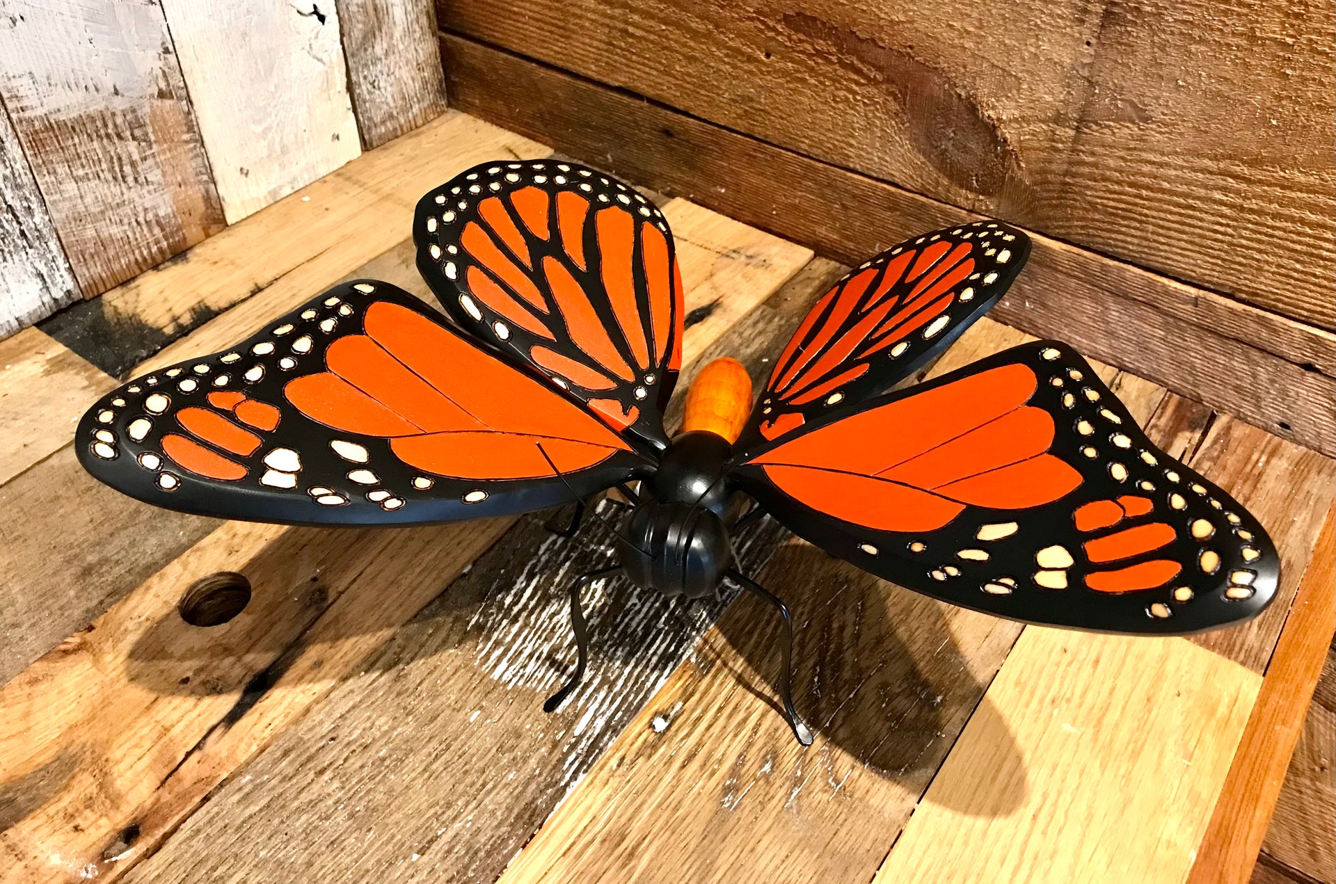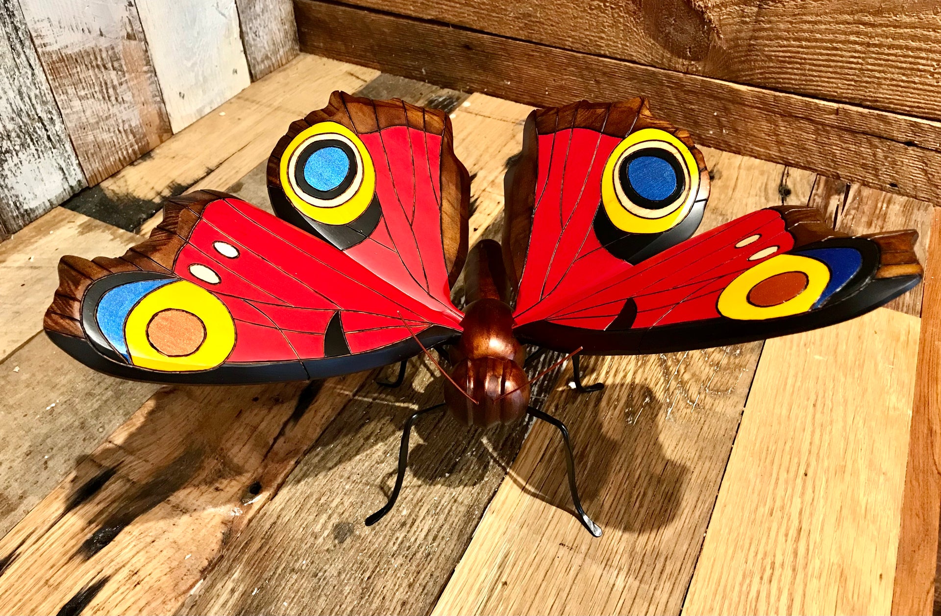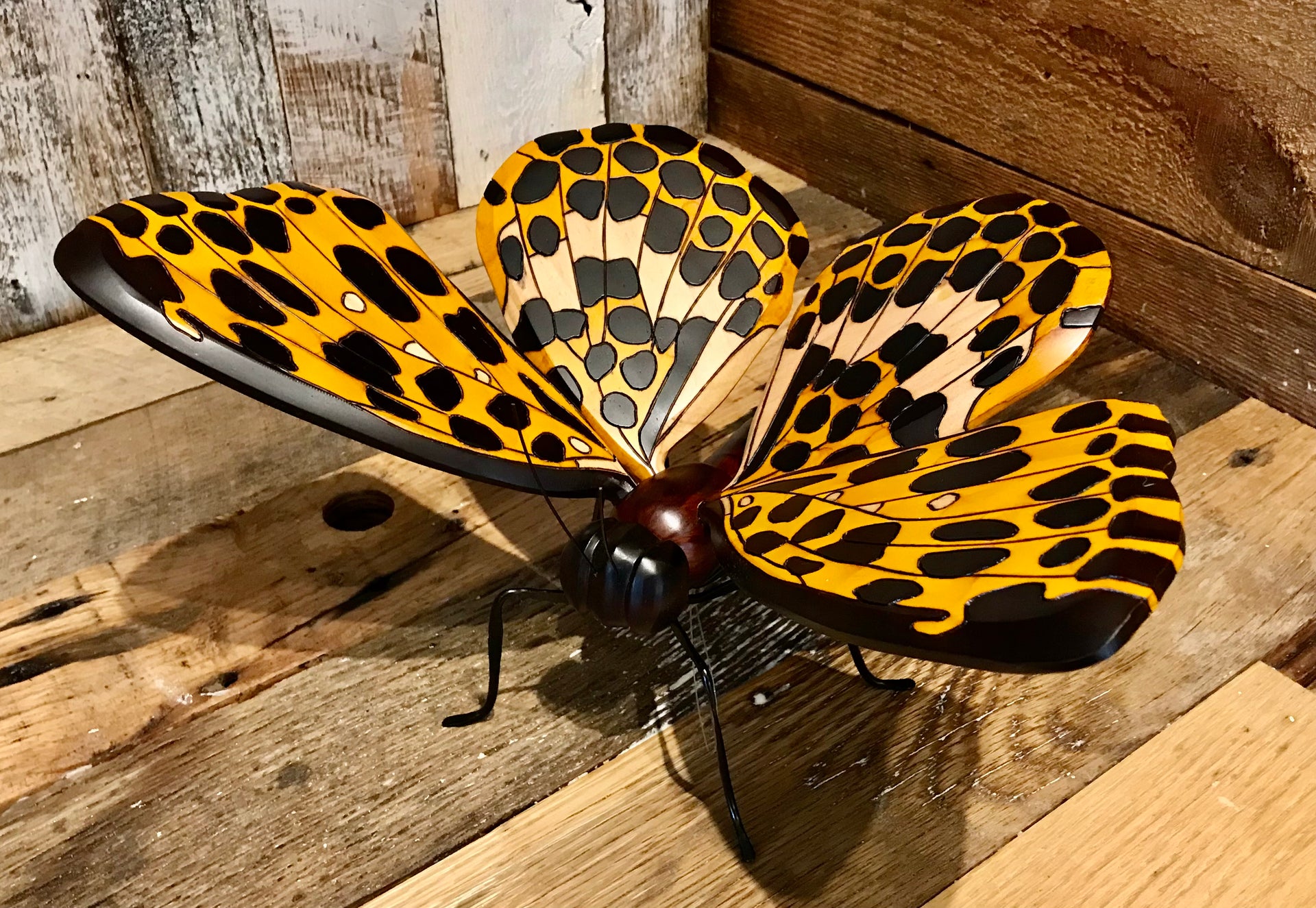 These butterflies were hand carved and painted by Colombian artisans. The wings are adjustable and so they can be positioned to give the best look wherever displayed. Around the world people view the butterfly as a symbol of bringing lightness, joy and bliss to those who surround them, so bring one into your space and enjoy.