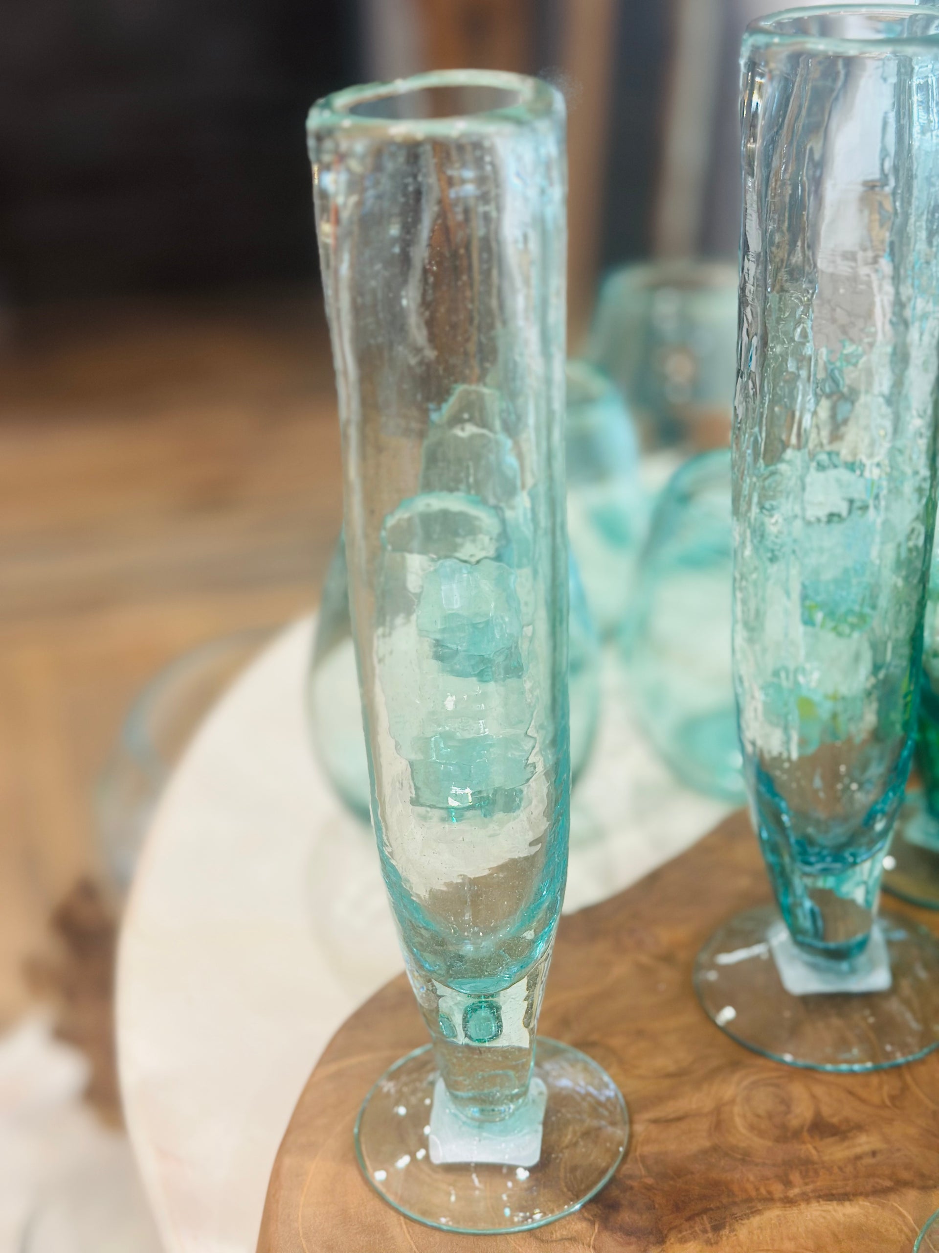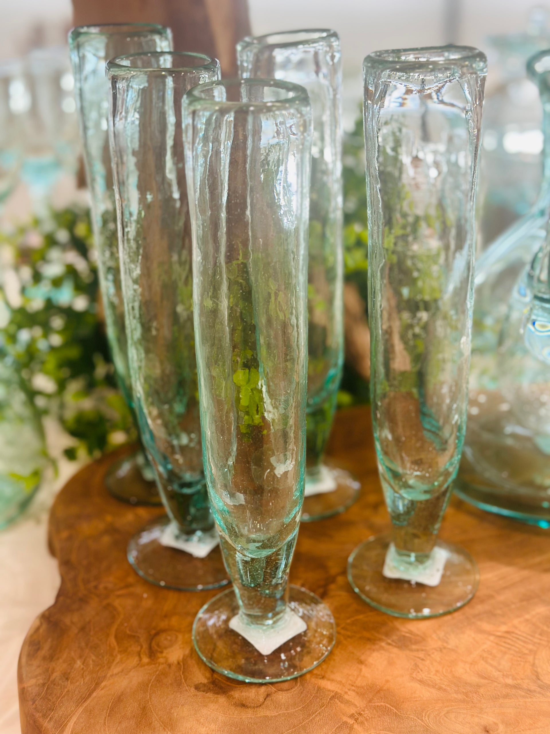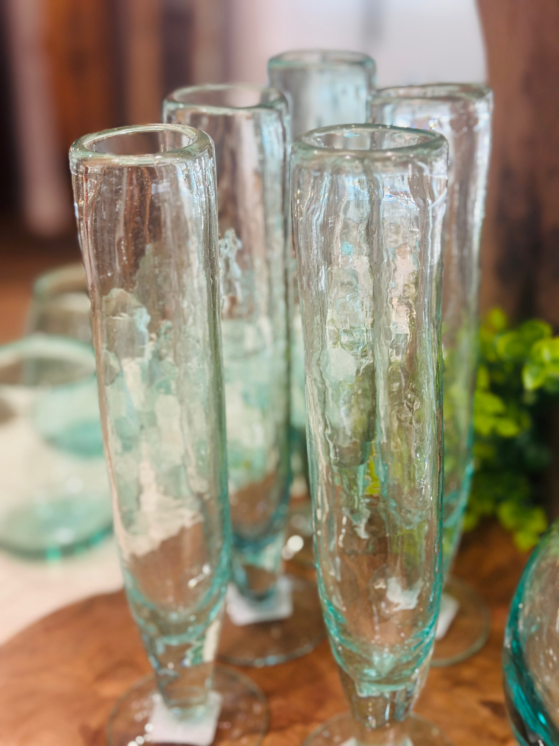These recycled glass champagne flutes are so unique and super sturdy for entertaining!