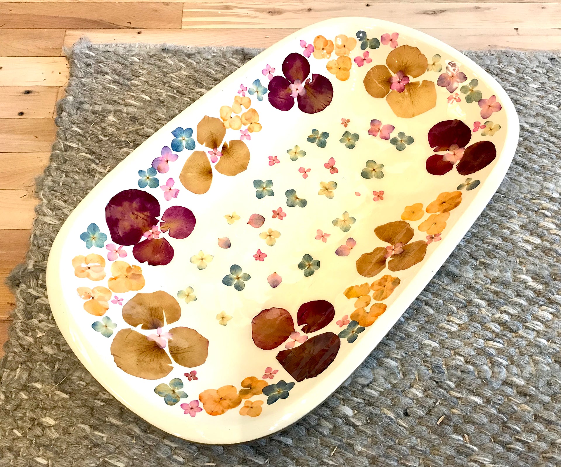 Oval Platter Pressed Flower